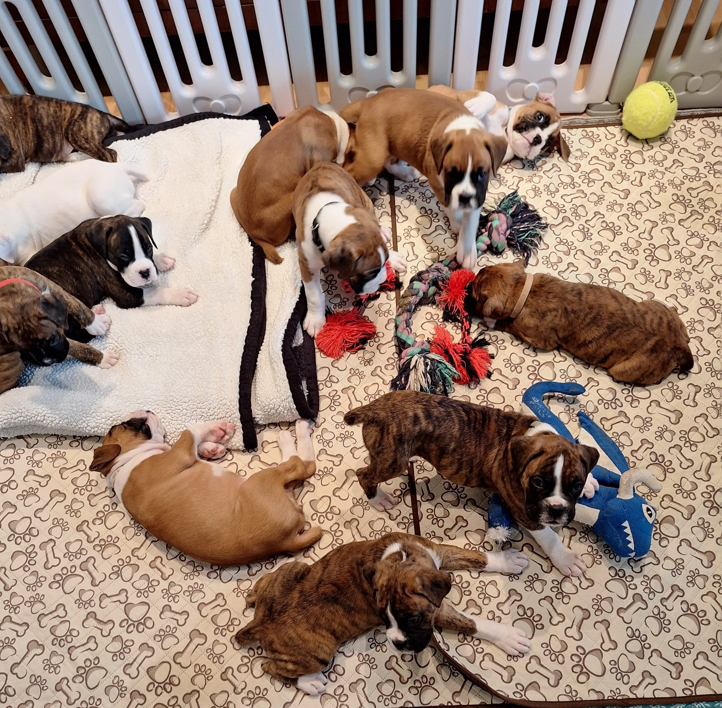 Sadie had 12 Puppies on February 11, 2026. Have questions or want guidance on selecting the right puppy? Contact me for a consultation. We want your new Boxer to live their healthiest and happiest life.